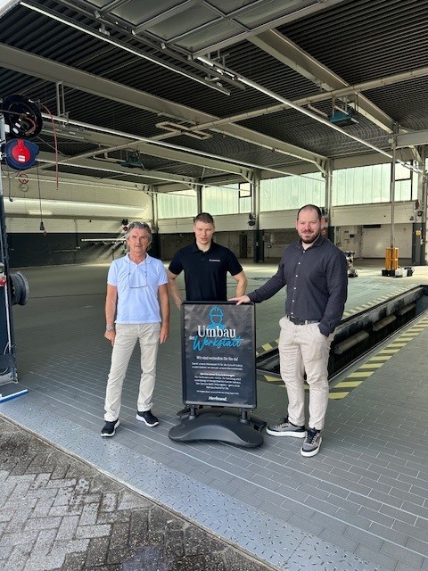 Der Werkstattbetrieb läuft während der gesamten Umbauphase uneingeschränkt weiter. Für unsere Kundinnen und Kunden ändert sich nichts.